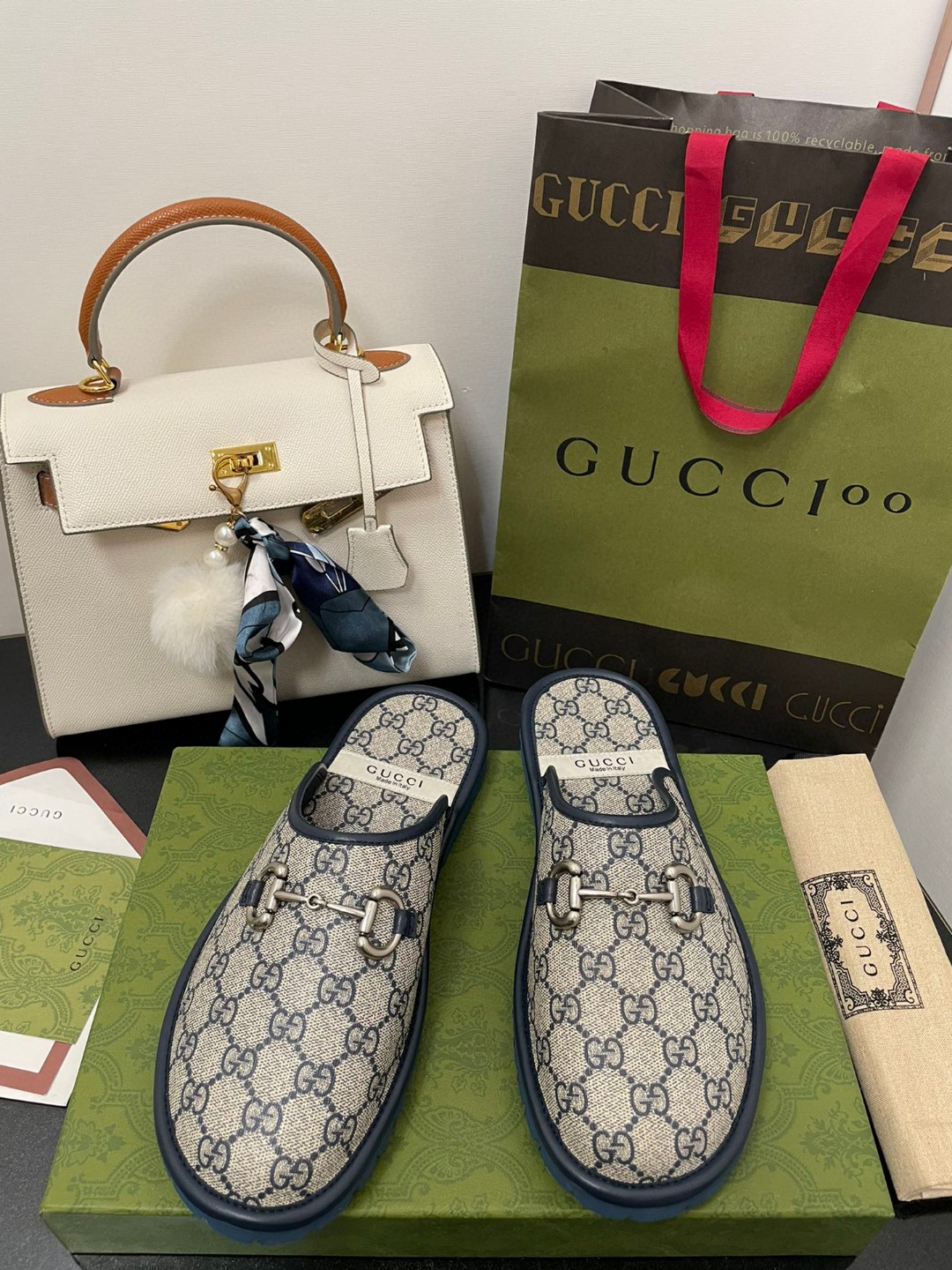 Gvc*1 Men’s GG Slipper With Horsebit Blue For Men GG Shoes 694249 96G60 4073